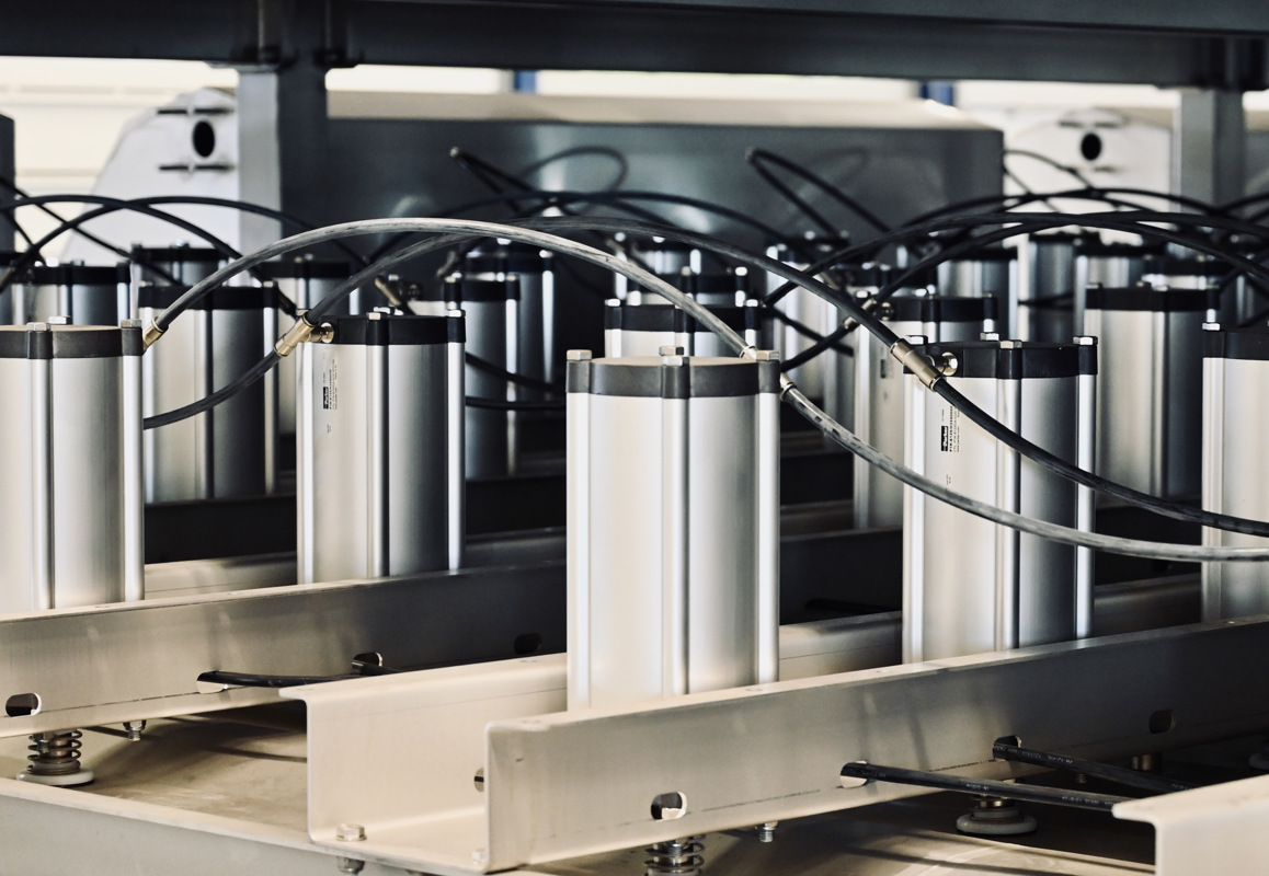 The KLOKSLAG cheese presses are characterized by the fact that each cheese is provided with a dedicated press cylinder as standard. This ensures the correct pressing pressure for each cheese. The advanced control system allows multiple pressing programs to be selected, with pressures up to 500 grams per cm².